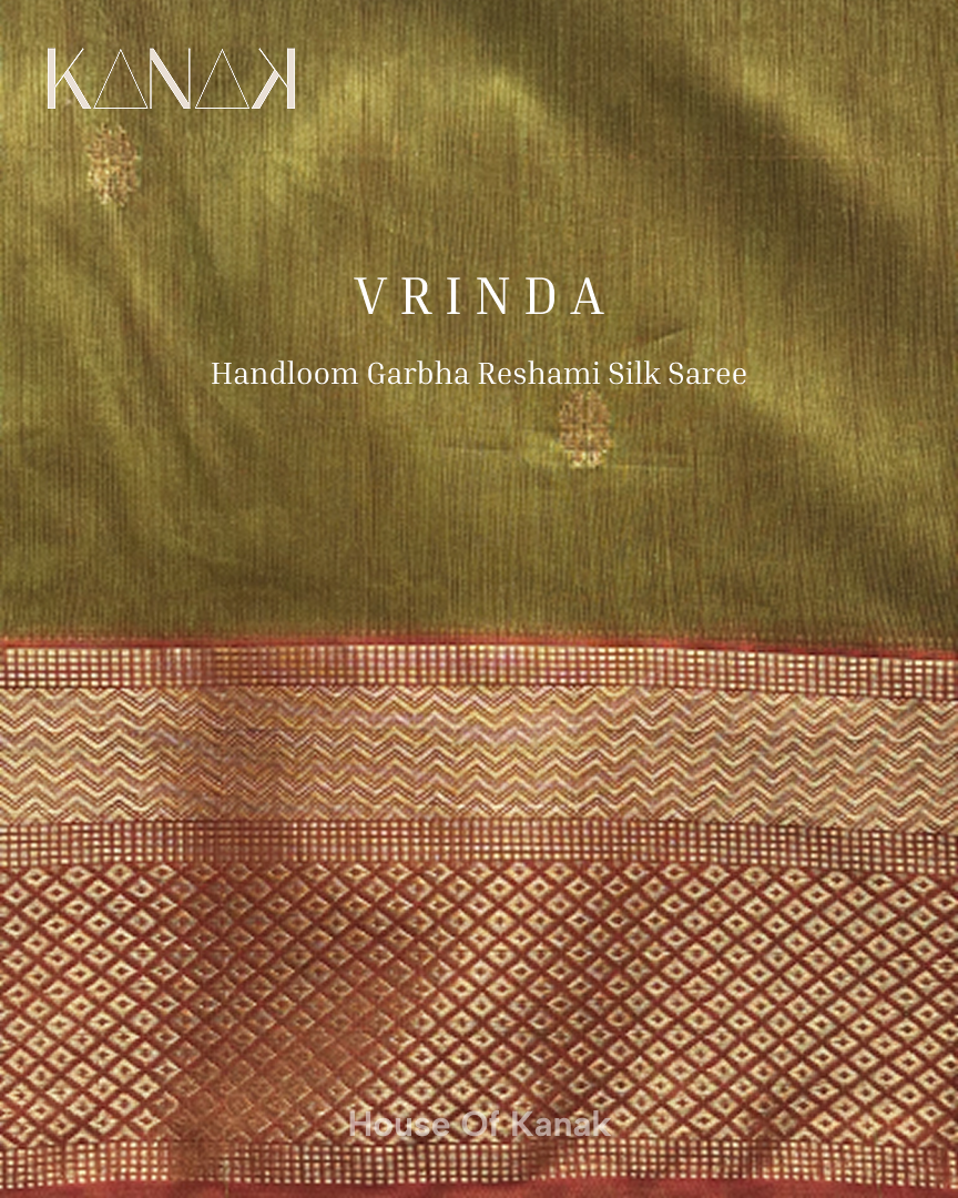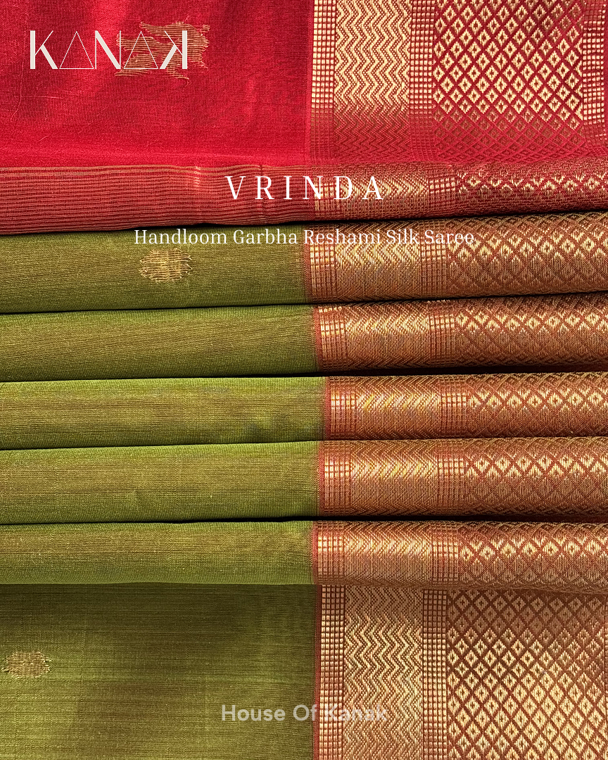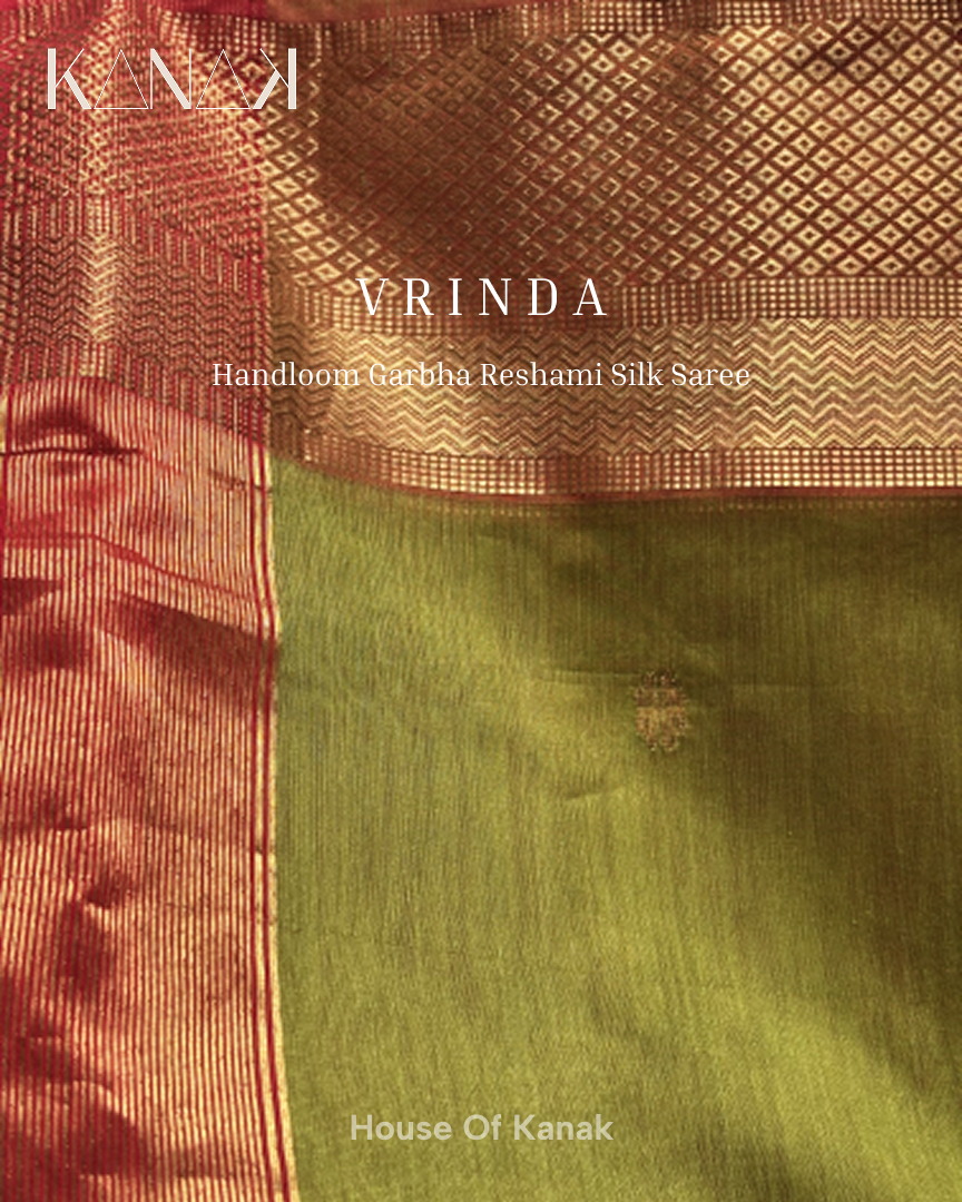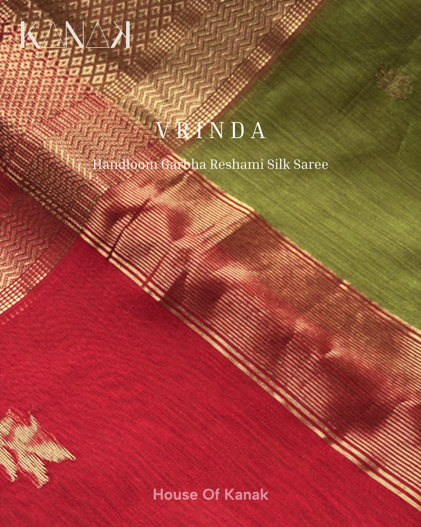 Vrinda, a Garbha Reshami Silk from Maheshwar, is poetry draped in heritage.